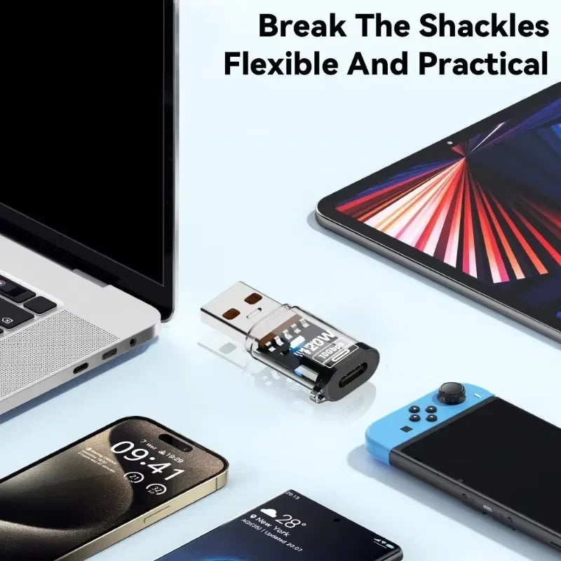 The 120W USB C OTG Adapter enables high-speed data transfer and efficient charging by connecting USB-A devices to USB-C ports. Supporting data rates up to 10Gbps, it ensures fast and reliable transfers. Compatible with iPhone 16, 15, and other USB-C devices, this adapter delivers up to 120W power for rapid charging. Its compact design and durable build make it an essential accessory for seamless connectivity and optimal performance.